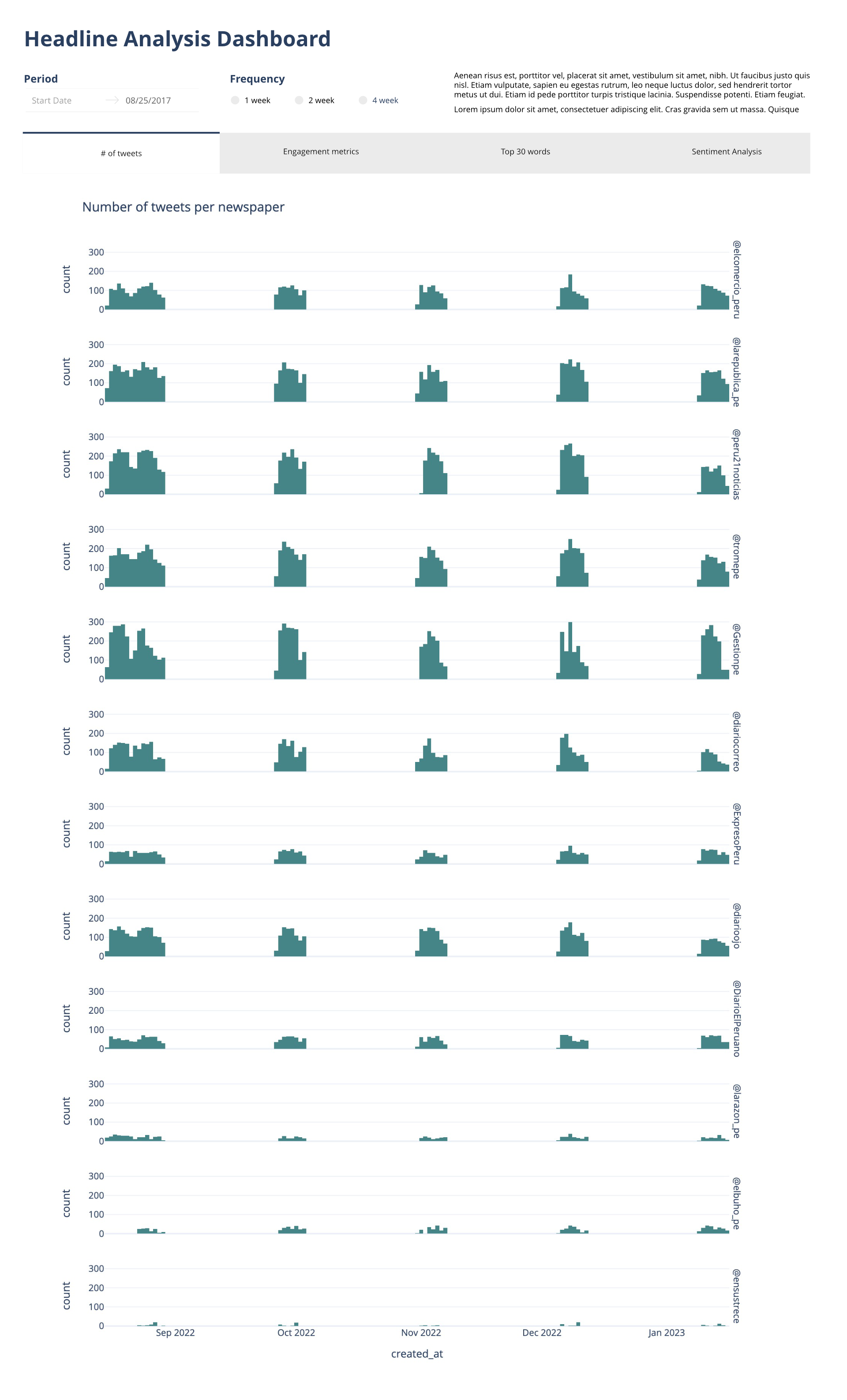 Now the data… first I thought about scrapping the web pages of the newspapers to get the information. That meant using tools like BeautifulSoup or Selenium to get the information. It will also mean that I had to build some sort of automatic tool to run every day to get the headlines and articles, I could use AWS Lambda for that. That is a bunch of work, just to get started. Although taking that route can improve skills in data collection from multiple sources (a bunch of dirty data at that).
